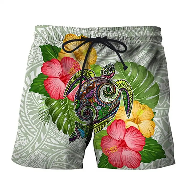 3D Printed Short For Men Floral Leaf Plant Pattern Swim Trunks Casual Street Beach Shorts